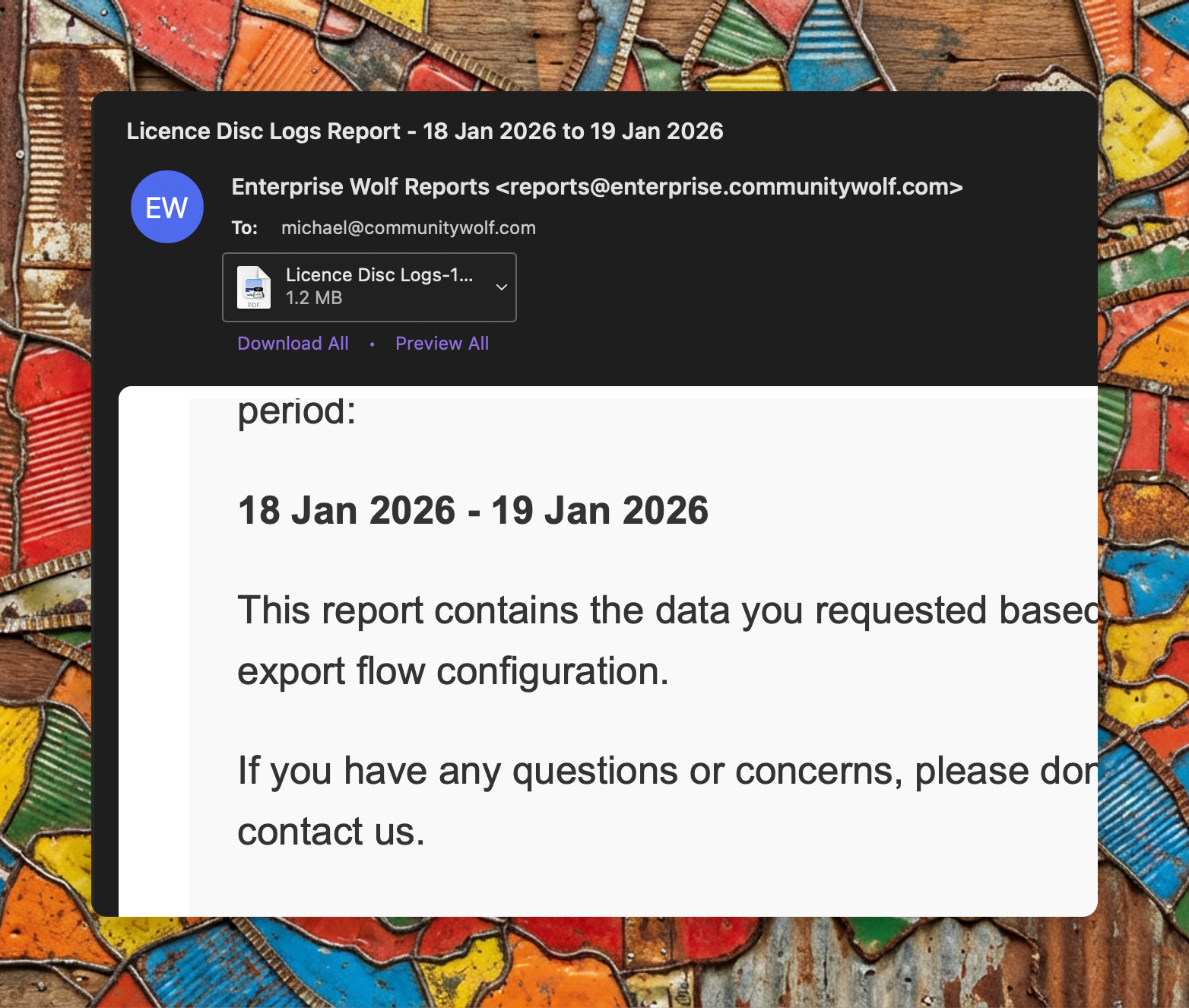 Recipients receive an email with an attached PDF. The PDF contains: